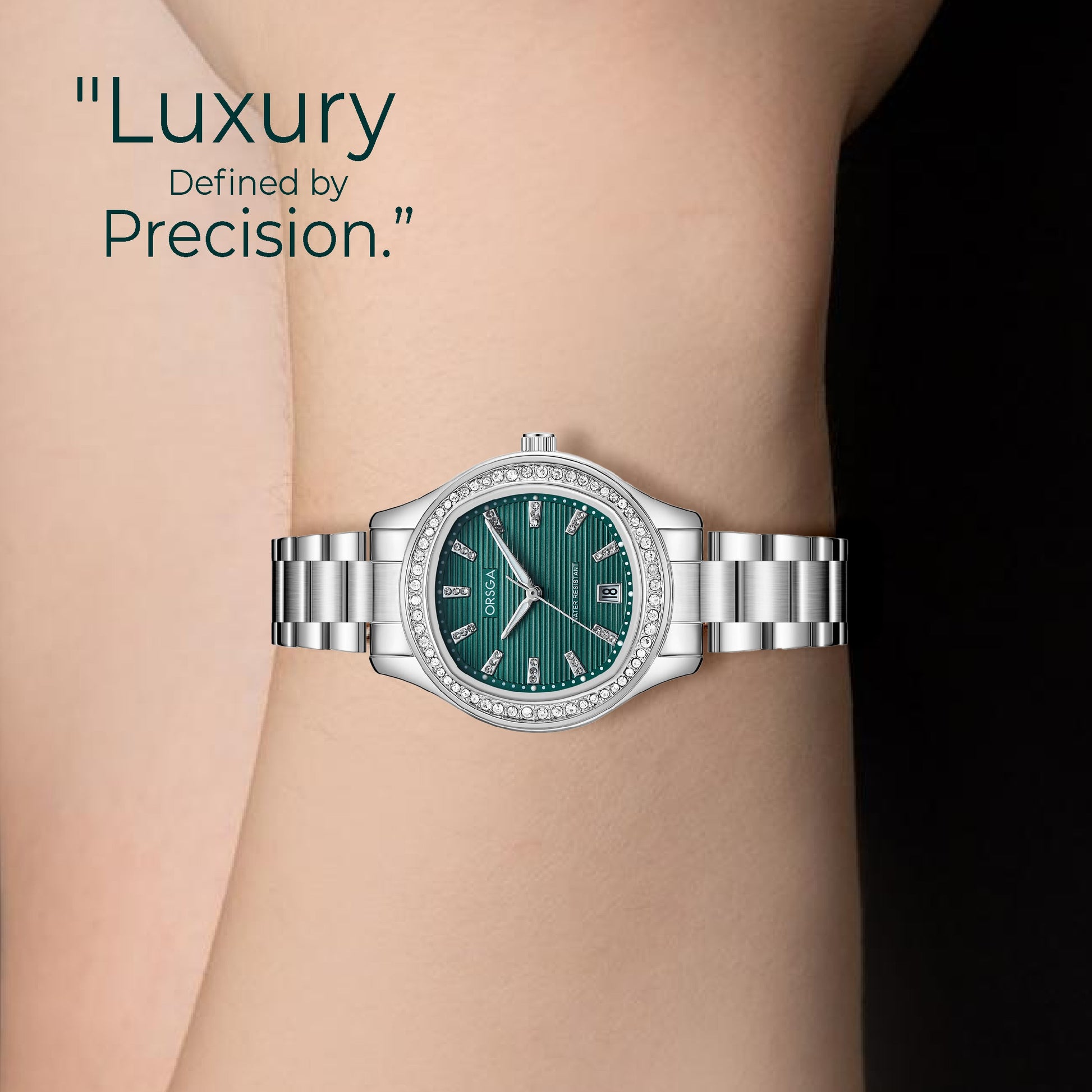 Discover Brilliance with the ORSGA OPALINE Green Dial Silver Watch
